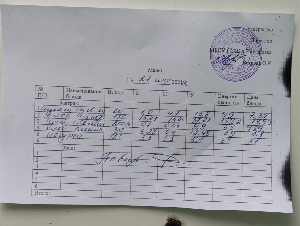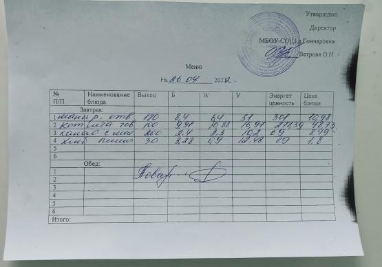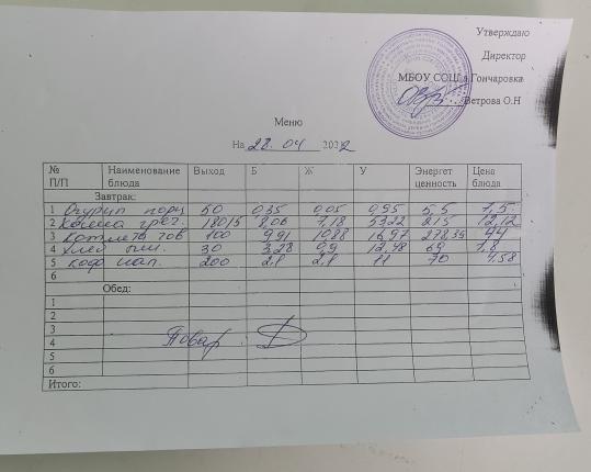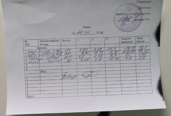 Контрольное блюдо